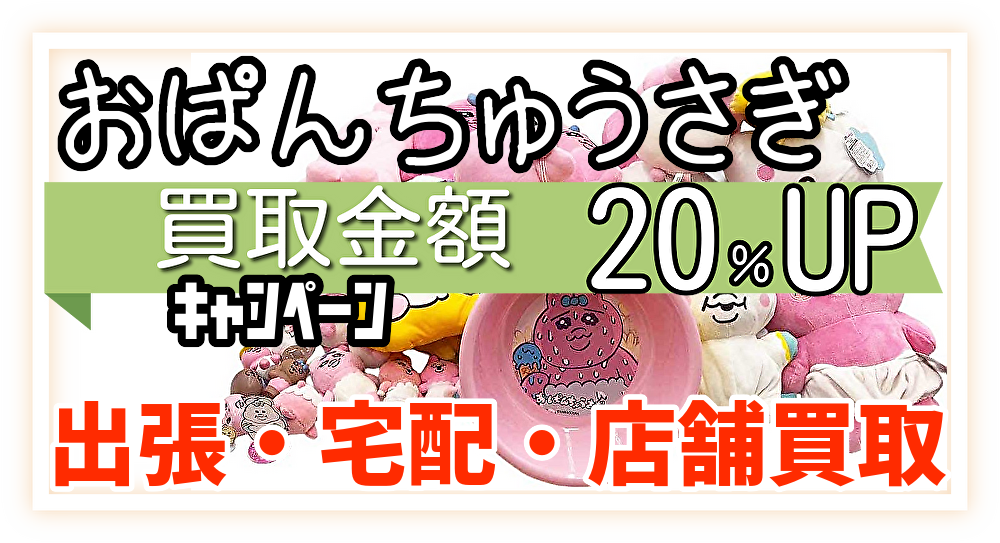 只おぱんちゅうさぎ・んぽちゃむ全グッズ買取金額20UPキャンペーン中!日頃の感謝の気持ちを込めてまとめ買いキャンペーンを実施中でございます。